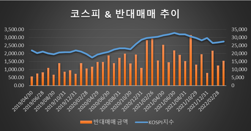 - 신용잔고의 감소와 반대매매의 증가는 증시가 어렵다는 상황을 대변하지만 역설적으로 국내 증시의 저점 신호이기도 합니다. 근래 신용잔고와 미수금이 급격하게 늘어난 탓에 해당 표에서는 잘 나타나지 않지만, 보통 신용잔고가 상승하다가 하락 전환 이후 반등하기 시작하는 경우가 많습니다.