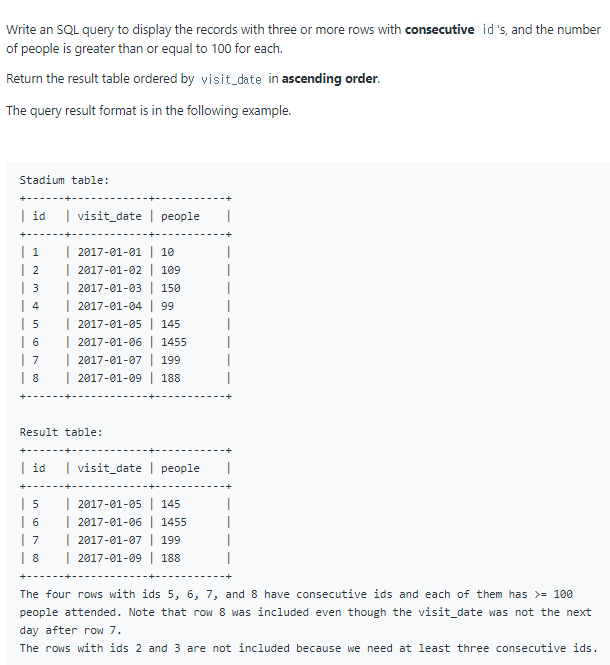 - 3개의 행이 연속적으로 people 값이 100 이상이어야 하므로 Stadium table t1 ~ t3까지 생성
